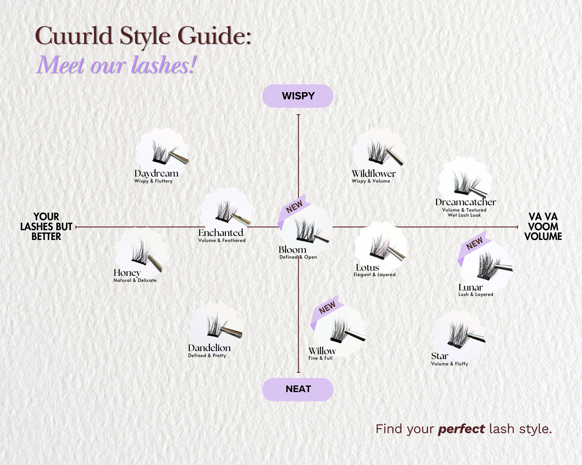 - Fuller lash styles might have shorter wear time (eg. Star)